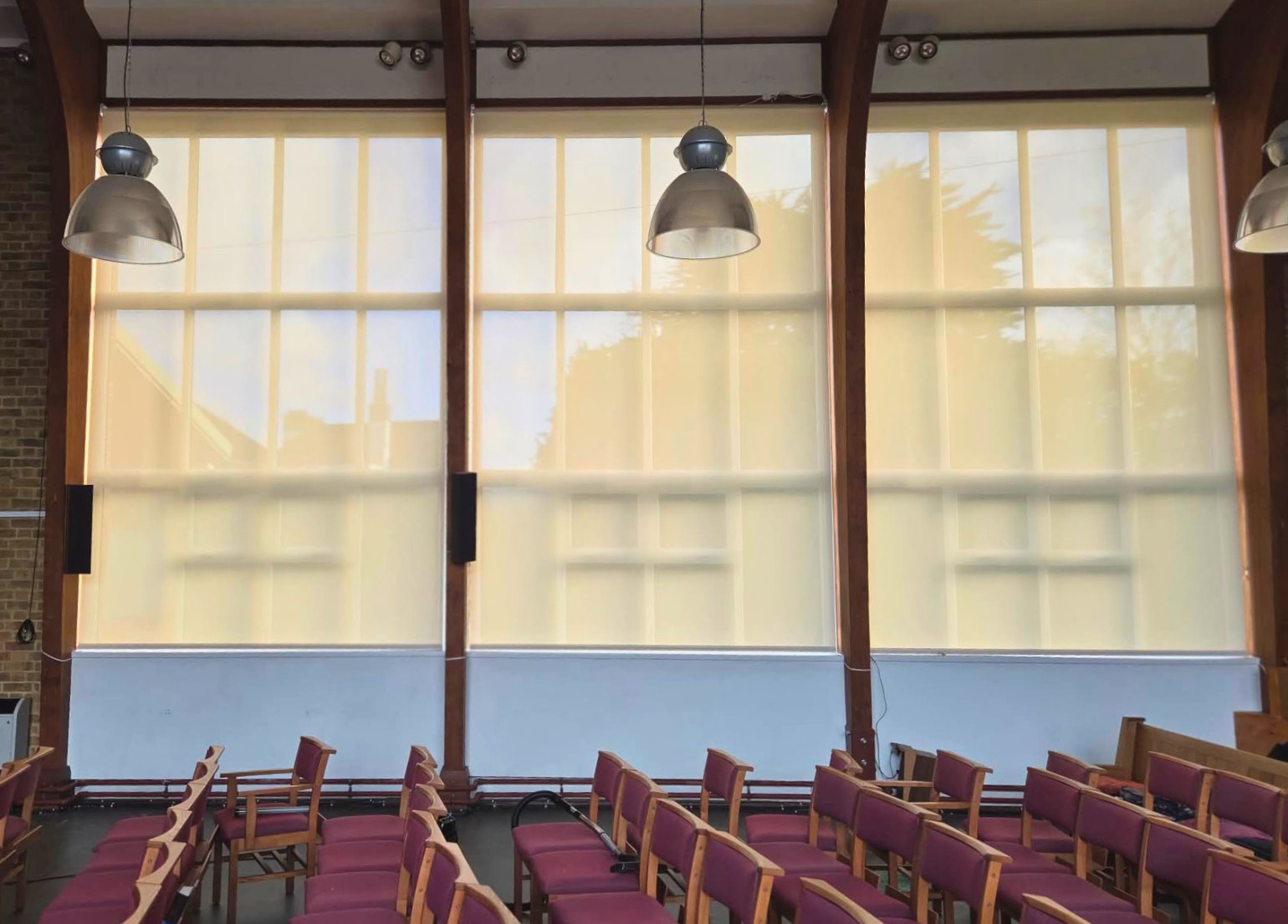 Whether it’s an oversized screen fabric roller blind spanning floor-to-ceiling windows or a tailored solution for offices, showrooms, schools, or hospitality spaces, we provide systems that manage light without compromising the feel of the space. Screen fabrics are particularly effective, softening harsh midday sun while maintaining outward visibility — ideal for environments where both comfort and connection to the outside matter.