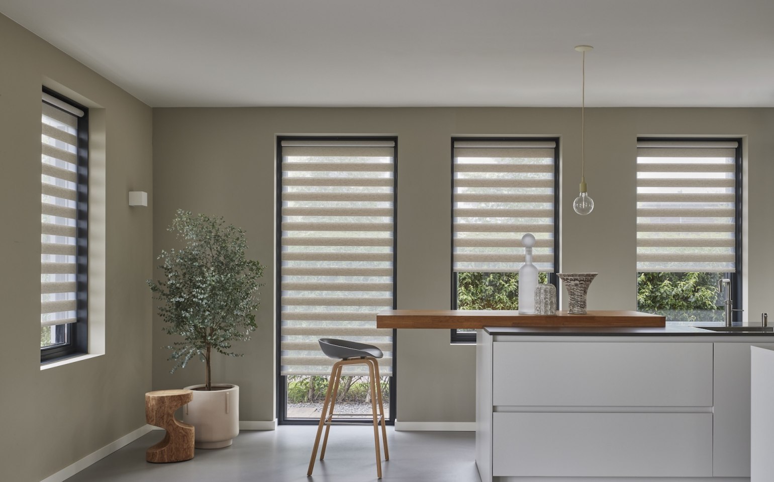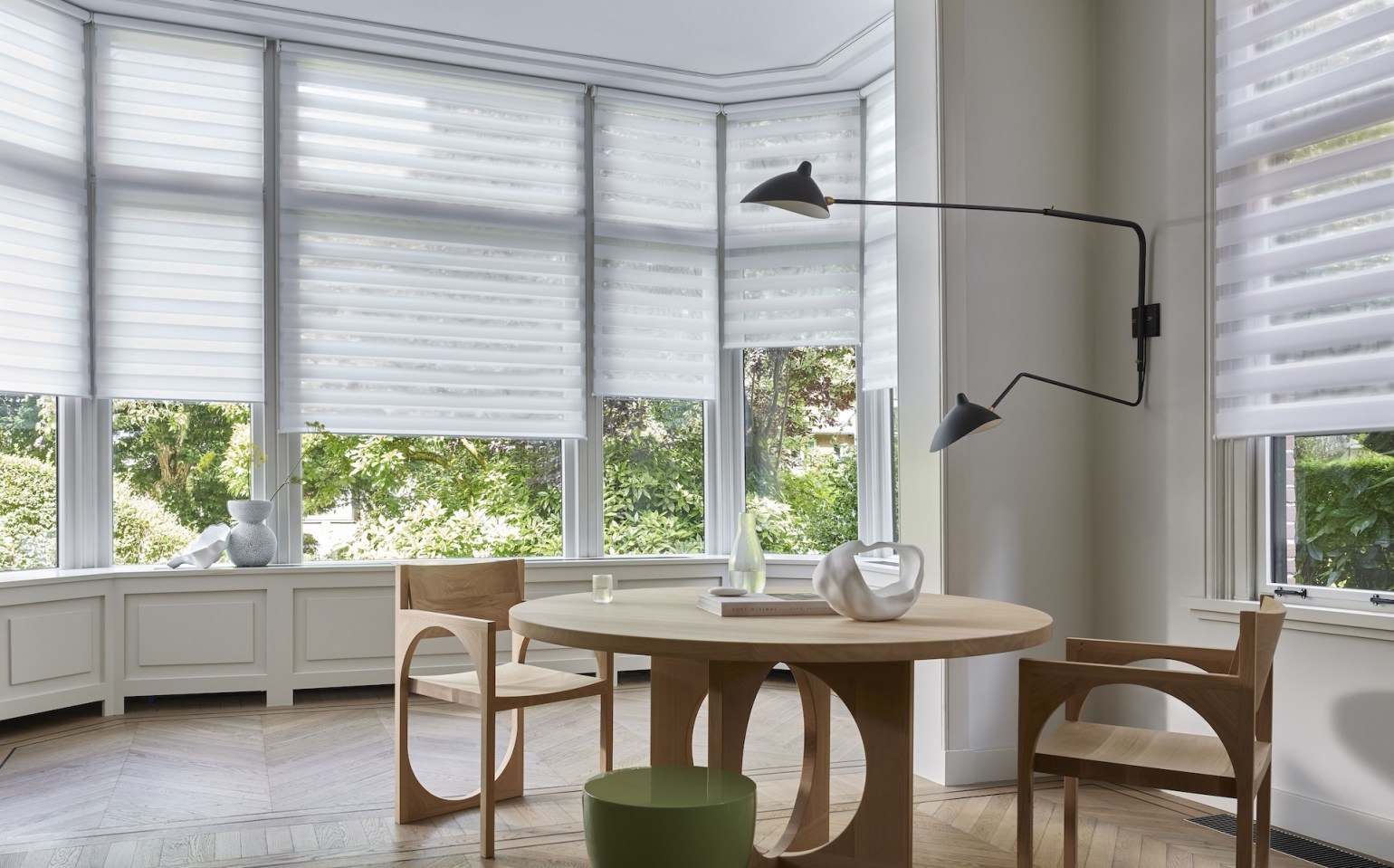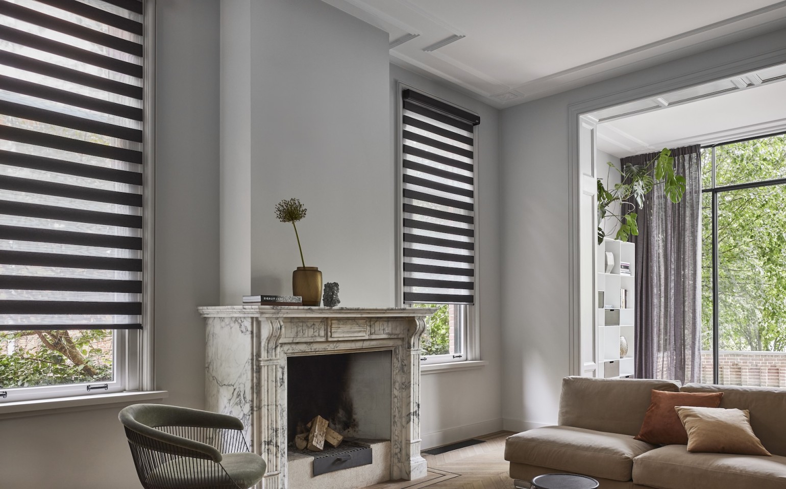 Duo blinds, also known as day and night blinds, offer a stylish and flexible way to control light and privacy, making them a popular choice for modern interiors. Their distinctive design features alternating sheer and opaque fabric panels that glide smoothly past each other, allowing you to fine-tune the balance between natural light and privacy throughout the day. Whether you want to softly diffuse daylight or create a more private, cosy setting in the evening, Duo blinds adapt effortlessly to your needs. With a wide choice of contemporary colours and textures available, they complement a variety of interior styles while providing a clean, streamlined look at the window.