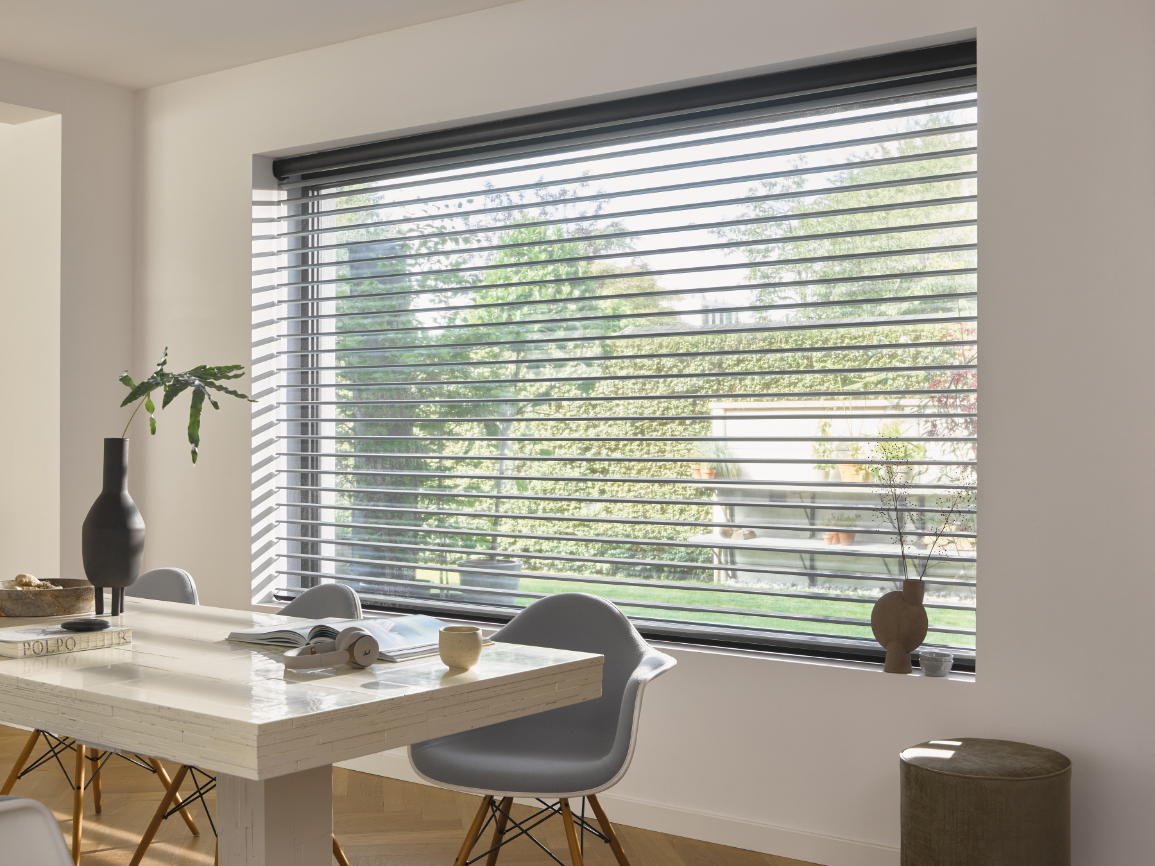 Our NEW 50 mm and 75 mm Silhouette® vanes, beautifully balance your windows from very small to extra-large windows and patio doors, all with a soft fabric style.